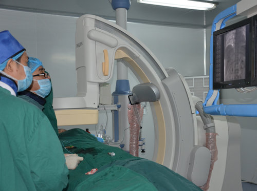 为提高介入诊疗水平,市中医院引进了目前世界上最先进的介入放射诊疗设备——飞利浦Allura Xper FD-20平板数字血管造影系统,已顺利使用,介入技术成功开展。